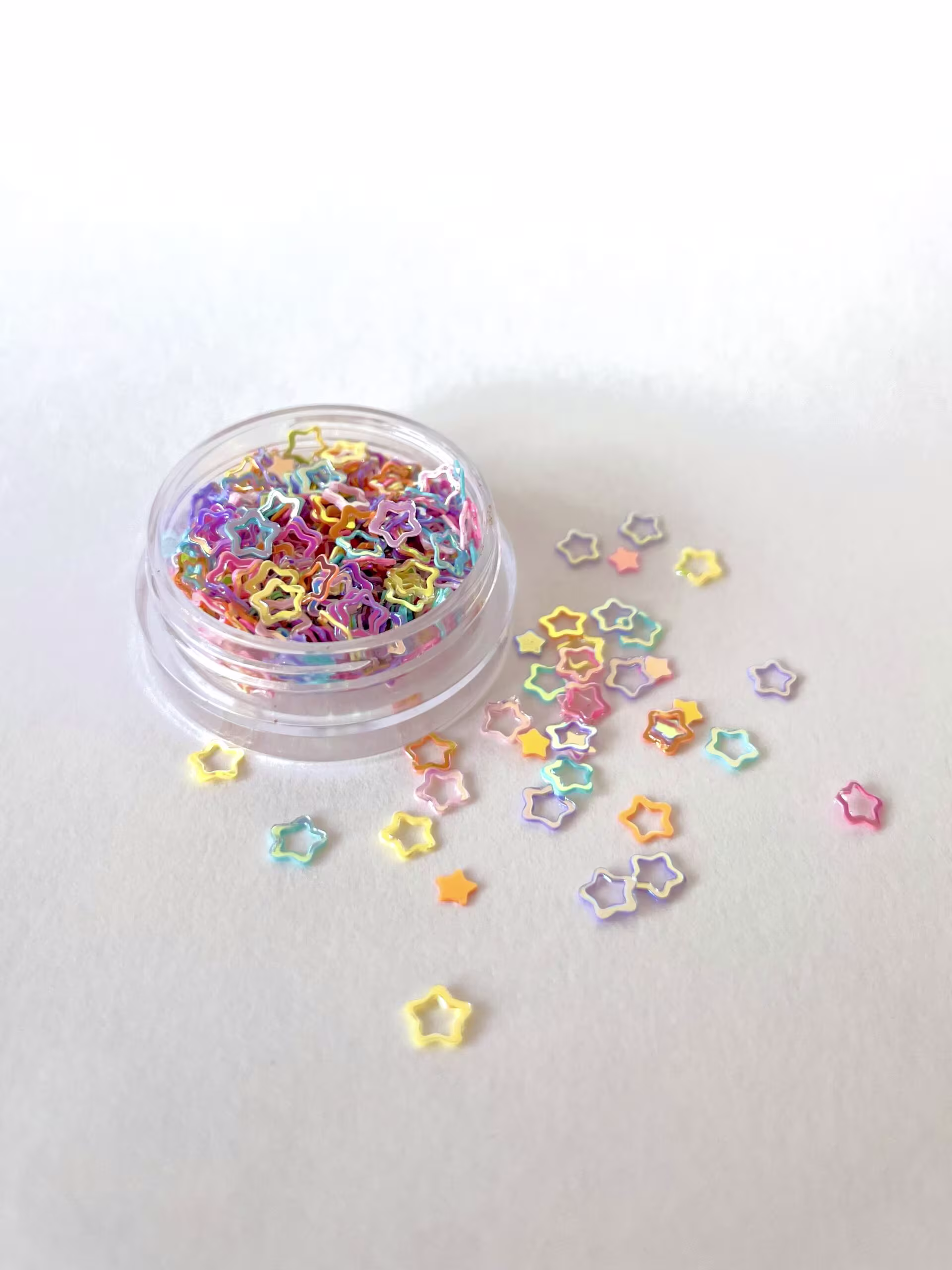 Dale un toque especial a tus uñas con Star Fantasy, nuestra purpurina en formas de estrellas multicolor.
